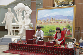Arkadag şäheriniň ýörite sungat mekdebiniň mugallymlary we talyplary aýdym-saz bilen çykyş etdiler.